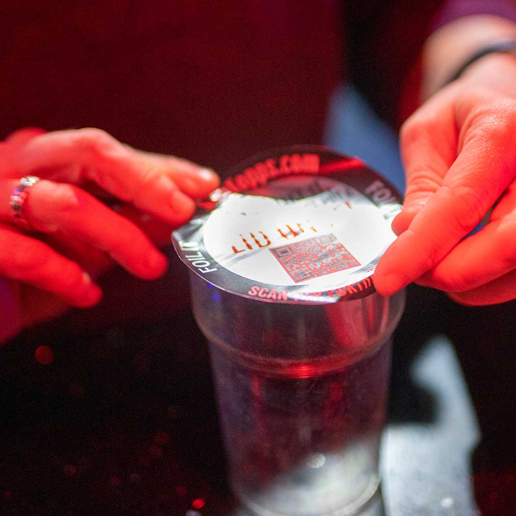 x100 self-adhesive StopTopps foil lids. Our anti-drink spiking protective covers are food and hygiene approved, and will fit securely on glassware, bottles, cans, and any other drinking vessels with up to a 100mm diameter. These anti-drink spiking protective covers are ideal for bars, pubs, clubs and venues to help safeguard people against spiking. The drink covers are easy to use and help protect your drink from being tampered with. Our drink protectors also include a QR code which links to spiking safety information.